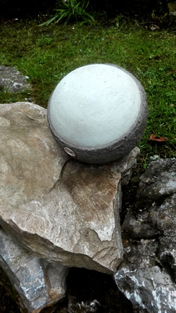 helle Volbetonkugel dunkel ummantelt | Betonkugel im Steingarten |